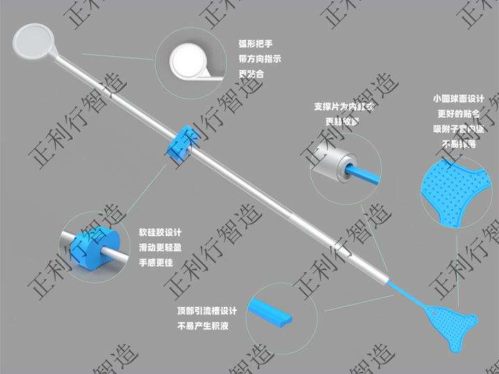 6、预防范围大:尾部的设计有效预防宫腔下段及宫颈内口的粘连,长短可根据患者宫腔下段长度调节修剪。